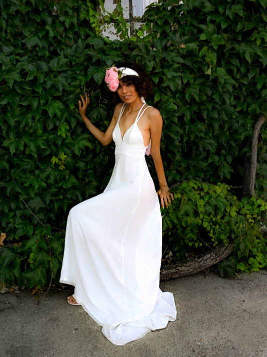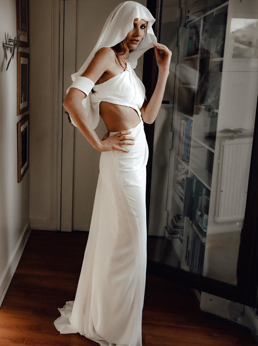 Thea asymmetric silk wedding dress