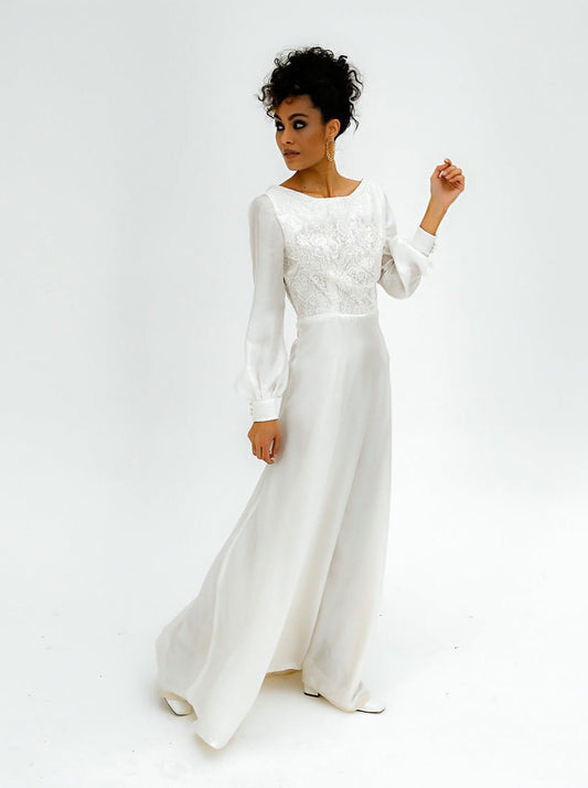 Isabella long-sleeved silk wedding dress